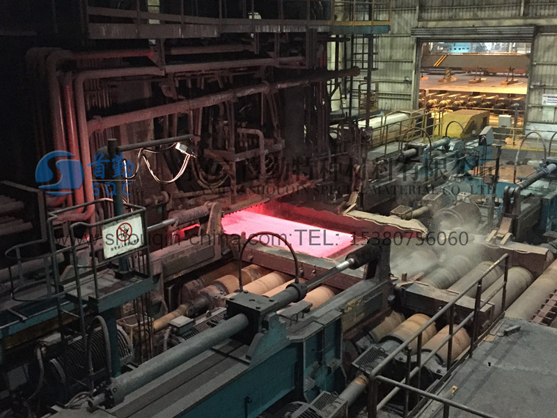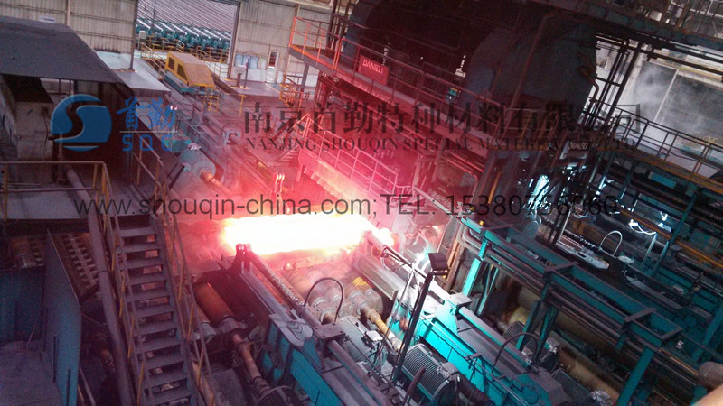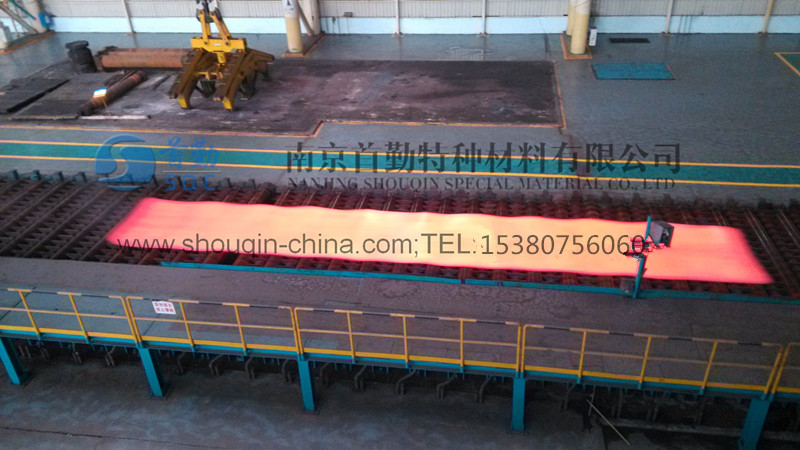 | 復(fù)合板坯料出爐(待軋制) | 復(fù)合板坯料粗軋機(jī)軋制 |